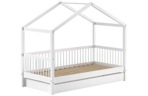 Minimalistická postel Vipack Forrest vás okouzlí svým hravým, leč jednoduchým designem dřevěného domečku. Vzdušnou konstrukci můžete vyladit například girlandami, lampióny, světýlky či závěsy. Útulný domeček v čistém bílém provedení se hodí do moderních interiérů a dětských pokojů. Zásuvku využijete jako úložný prostor na deky, polštáře a peřiny či oblečení.
