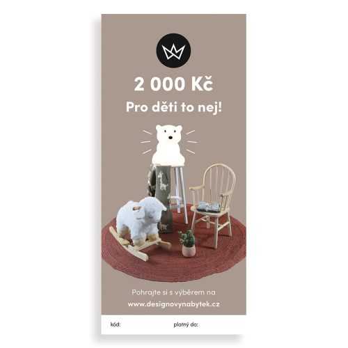 Máte ve svém okolí někoho, kdo právě předělává nebo dává dohromady pokojíček pro svou drahou ratolest? Vaše odpověď zní ANO? Pak dotyčné rodiče rozhodně neurazí dárek v podobě elektronického poukazu v hodnotě 2000 Kč. Poukaz je milý a pozorný dárek, který vykouzlí nejeden úsměv na tváři a rodiče si tak mohou vybrat ze široké nabídky dětského sortimentu na našem webu. Pro děti to nej!
