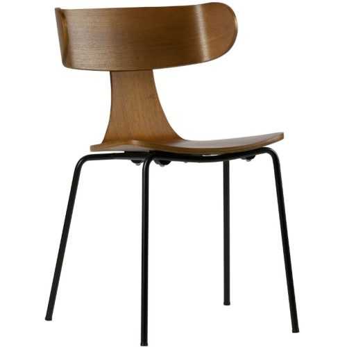 Designová jídelní židle Plane svým tvarem a zpracováním evokuje stále oblíbený retro styl. Dřevěný sedák a opěradlo jsou upevněné na kovové konstrukci lakované černou barvou. Zajímavým detailem je prodloužené opěradlo zvyšující celkový komfort při sezení.