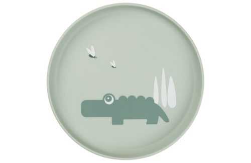 Praktický talíř od Done by Deer zaujme svým hravým vzhledem každého malého uličníka. Zelený krokodýl Croco bude doprovázet vaši ratolest, ať už bude právě svačit, obědvat či večeřet. Talíř je vyrobený z potravinářského plastu, a díky protiskluzovému TPE povrchu na spodní straně se nemusíte bát, že by ze stolu sklouzl. Vysoký okraj a kulaté hrany zase zajistí snadné nabírání jídla.